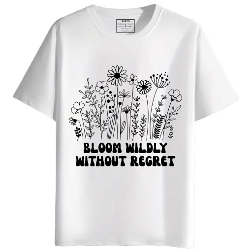 Find inspiration in nature’s unbridled beauty with the “Bloom Wildly Without Regret” Round Neck Half Sleeves Printed T-Shirt. This tee combines a beautiful, mindful message with superior comfort and quality. Made from 100% pure cotton with a substantial 180 GSM weight, it offers a great feel and excellent drape. The special bio-wash process enhances its softness and ensures long-lasting wear, making it a perfect staple for anyone who appreciates personal growth and a life lived fully.