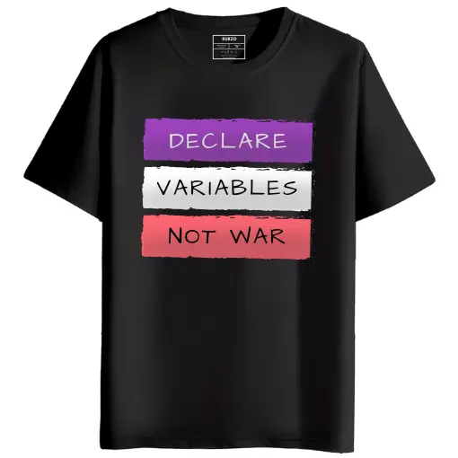 This isn’t just a t-shirt; it’s the ultimate statement for the tech-savvy pacifist. Our “Declare Variables, Not War” Round Neck Half Sleeves T-Shirt is a clever and humorous take on a serious message, perfect for coders, programmers, and anyone who prefers solving problems with logic, not conflict.