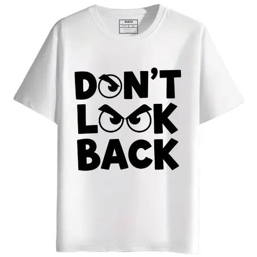 Make a bold, confident statement with the RUKZO “Don’t Look Back” round neck half sleeves graphic printed T-Shirt. This unique tee combines a powerful, timeless message with superior comfort and quality.