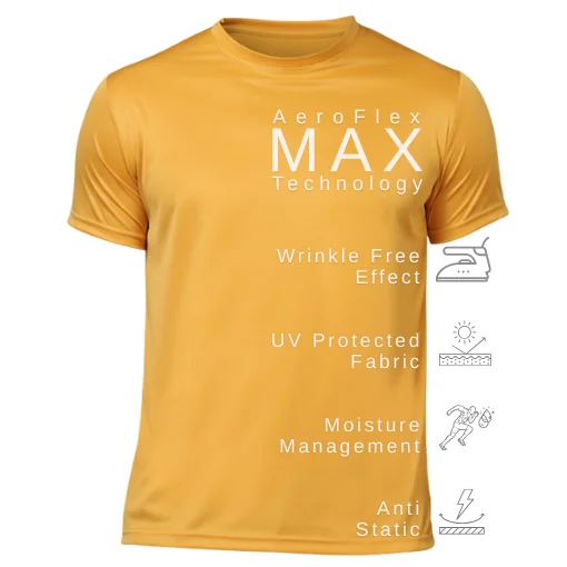RUKZO Dry Fit T-Shirt for Men – Quick Dry Performance Gym & Workout Training Tee | Mustard