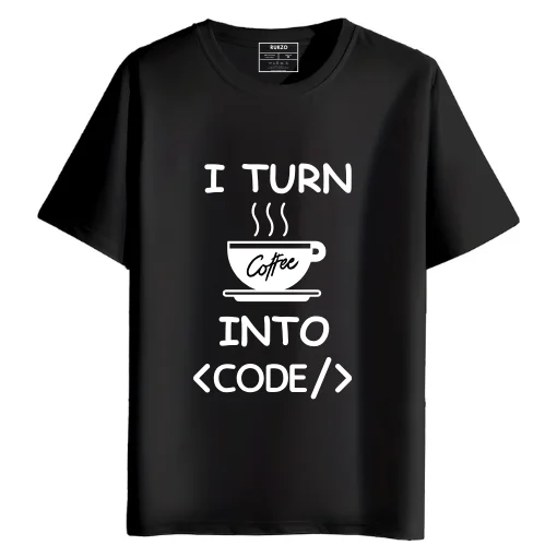 Combine your love for coffee and coding with a premium feel in the RUKZO “I Turn Coffee Into Code” Round Neck Half Sleeves Printed T-Shirt. This tee is made for those who build the future, one line of code at a time.