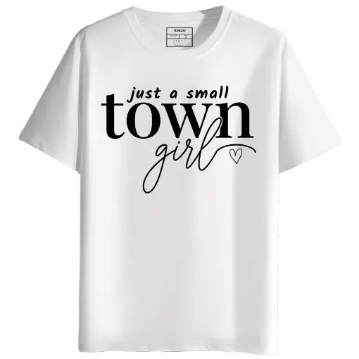 From small towns, big things grow. Our RUKZO “Just A Small Town Girl” round neck half sleeves graphic printed T-Shirt is for the woman with a heart of gold.