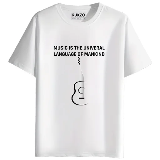RUKZO Music Lover’s Guitar Graphic T-Shirt – Universal Language | 100% Cotton | 180 GSM | Premium Comfort & Style
