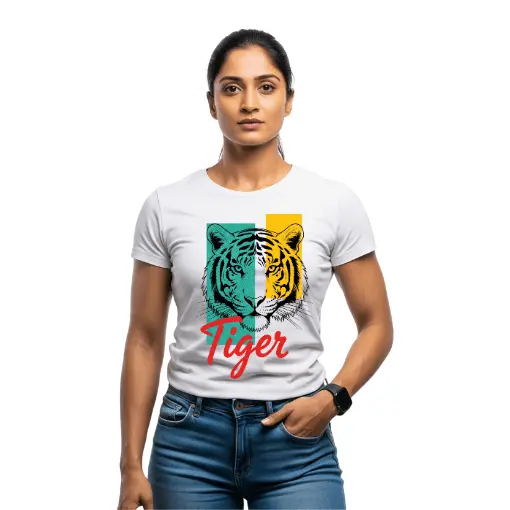 Make a bold, artistic statement with the RUKZO “Wild Tiger” round neck half sleeves graphic printed T-Shirt. This unique tee combines a striking, detailed illustration with superior comfort and quality.